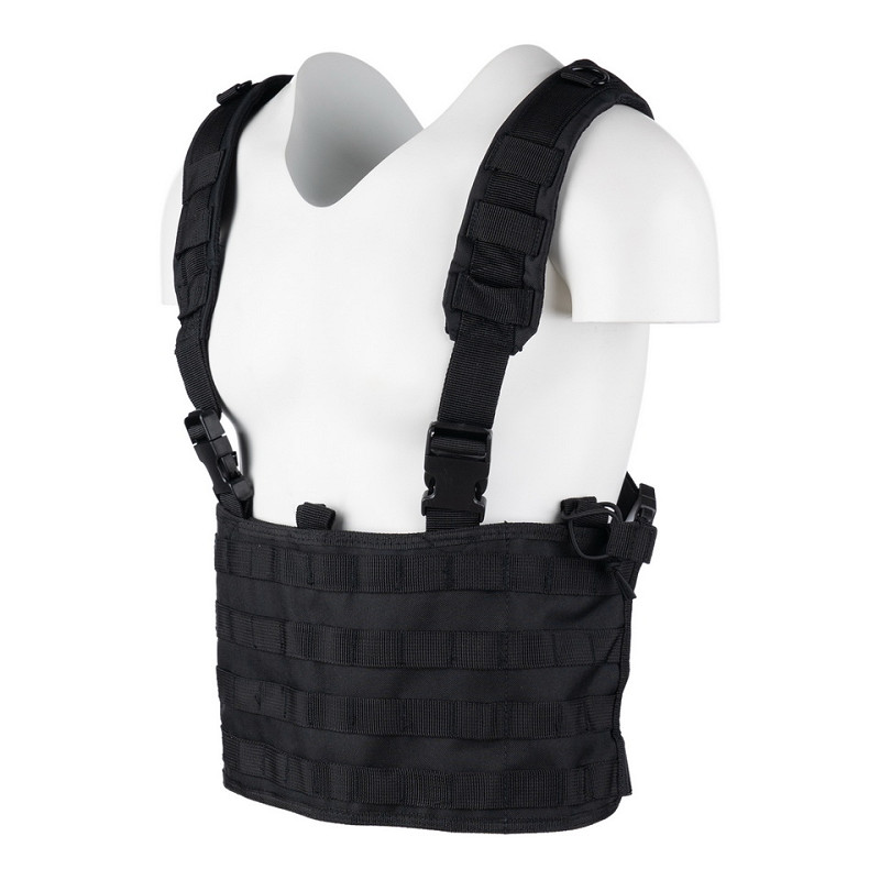 Diese Chest Rig Recon LQ14317 ist eine leichte und funktionale Ausrüstung für Outdoor- oder taktische Einsätze. Ausgestattet mit einem umfangreichen M.O.L.L.E.-System an der Vorderseite und den Schultergurten bietet dieses Rig maximale Modularität zur Befestigung von Taschen und Zubehör. Hergestellt aus 100 % Nylon mit verstellbaren Gurten für eine bequeme Passform und optimale Bewegungsfreiheit.