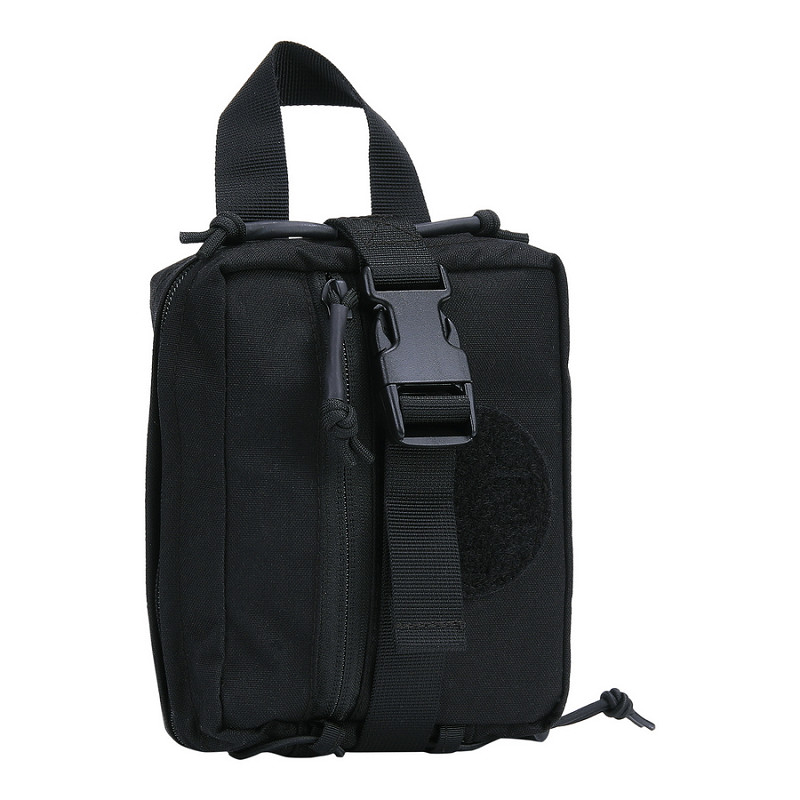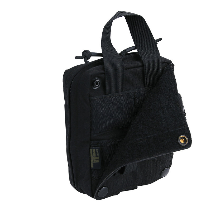 Diese Sanitätertasche hat ein Klettverschluss Rip-off Panel für den einfachen Griff in die Tasche.