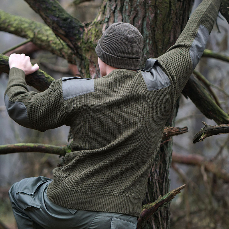Der Kommandopulli hat Schulter- und Ellenbogen-Patches und eine Brusttasche.