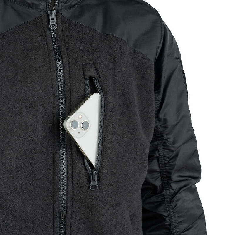 Die MA-1 Fleece-Bomberjacke ist eine bequeme, hochwertige dicke Fleecejacke mit Ärmeln im Stil einer authentischen MA-1 Bomberjacke. Die Jacke hat einen hohen Kragen für mehr Komfort bei windigem Wetter.