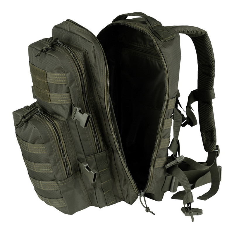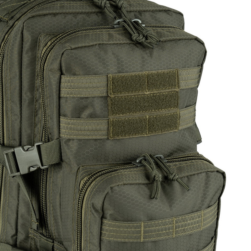 Three spacious zippered compartments allow you to pack quickly and neatly. The various storage options ensure that your equipment always stays organized. Thanks to the MOLLE loops, you can easily attach extra gear and expand the bag to suit your needs. The Velcro panel on the front offers space for patches or identification.