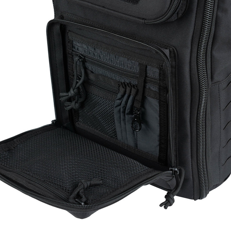 This backpack offers maximum storage space with multiple mesh zippered pockets. The hardcase front pocket protects fragile items such as electronics or glasses.