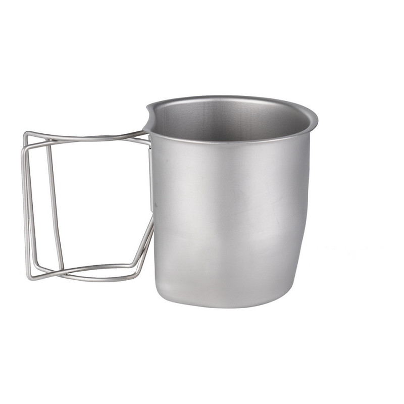 The metal handle on the rear of the mug is hinged to allow it to fold back around the mug itself, helping to reduce the pack size.