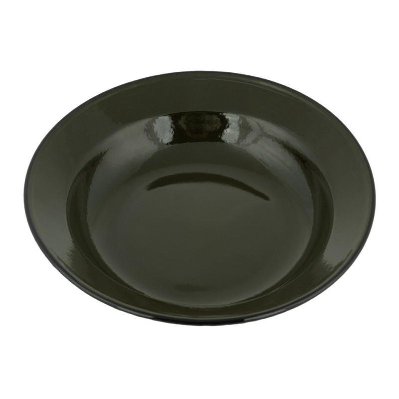 Deep enamel plate. Green enameled steel with a dark edge. High quality enamel and wear resistant.