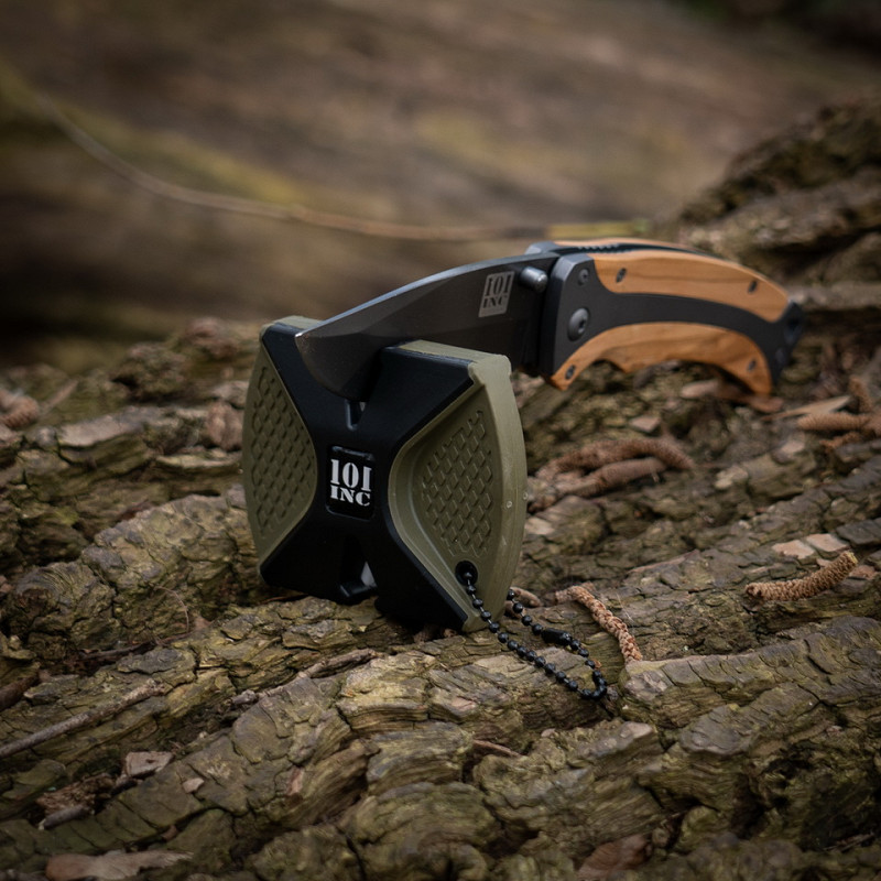 This compact and lightweight sharpener is perfect for outdoor enthusiasts and hunters who always want a sharp knife at hand. With two sharpening zones – a tungsten steel sharpener to restore dull blades and a ceramic sharpener for fine polishing – it ensures a perfect result. The ergonomic ABS + TPR handle provides a secure grip, allowing for safe and precise sharpening. Its pocket-size design makes it easy to carry in your backpack, jacket pocket, or tool bag.