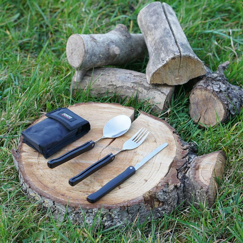 Foldable 3 pcs. cutlery kit nade of 100% metal.