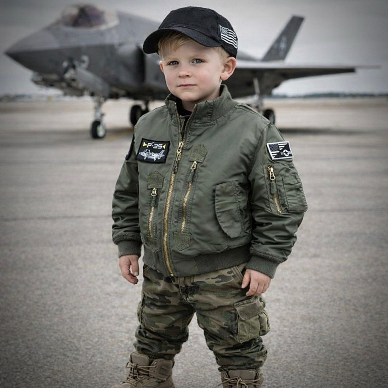 Discover the world of aviation in style with the Kids F-35 Flight Jacket. This cool jacket is inspired by the classic flight suits of the US Air Force and features three unique patches referring to the iconic F-35 and the US Air Force.