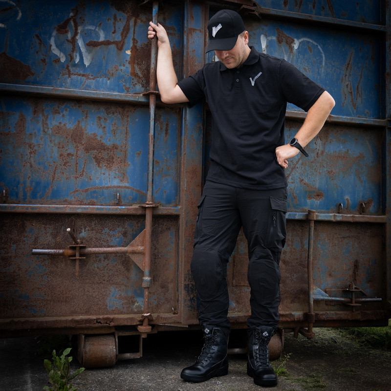 This lightweight cap is made of 4-way stretch fabric, consisting of 90% nylon and 10% elastic and quick-drying material. Because the fabric is so flexible and lightweight, the cap is very comfortable to wear. The cap is closed at the back. There are no adjustment options. The cap is fitted with an elastic band so it adjusts to the size of the head. The cap features the security logo and is a real addition to the security outfit.