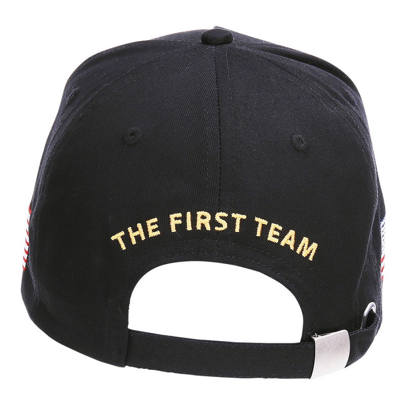 The baseball cap has 3D embroidered text and is adjustable on the backside.