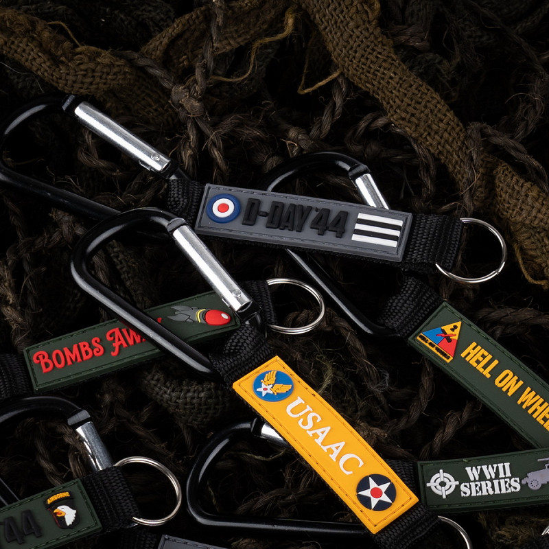 The aluminum carabiner / key ring is a handy tool to quickly and easily attach your key ring to your bag or pants.