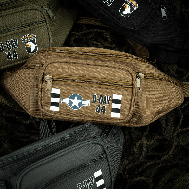 A special D-Day waist bag with five different compartments that can be closed with a zipper.