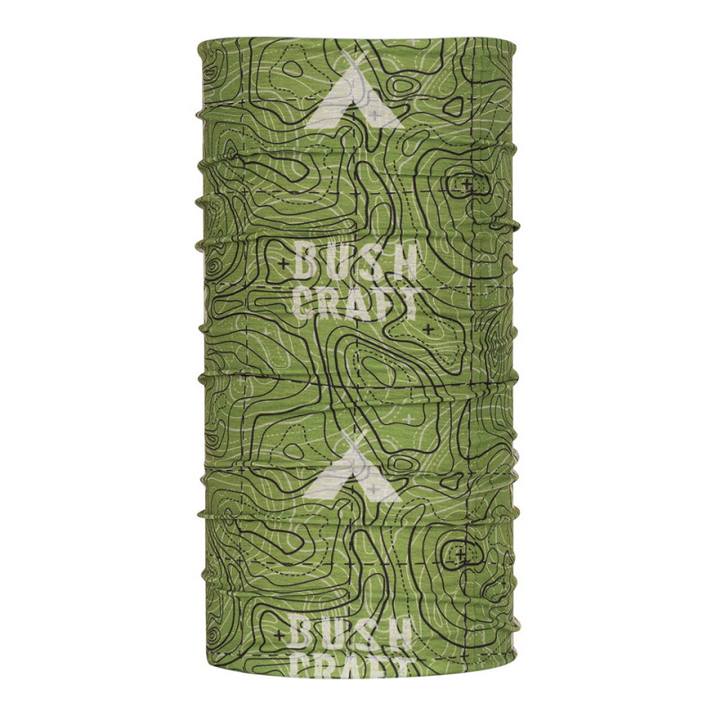 Made of a soft and stretchy fabric, this Wrap is designed to be worn in various ways, such as a scarf, face mask, headband, hat and more. Ideal for all kinds of activities and weather conditions. The Wrap has a beautifully detailed appearance. The Wrap incorporates a topographic elevation map and has some nice logos, including Bush Craft and outdoor graphics.