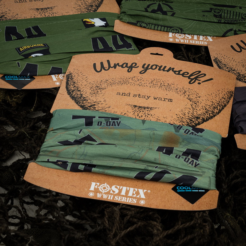 Made of a soft and stretchy fabric, this Wrap is designed to be worn in various ways, such as a scarf, face mask, headband, hat and more. Ideal for all kinds of activities and weather conditions. The Wrap has a beautifully detailed appearance. The Wrap features the map of Normandy and has some nice '44 D-Day logos.