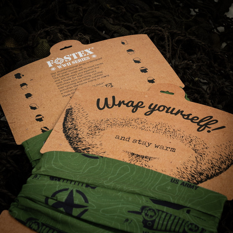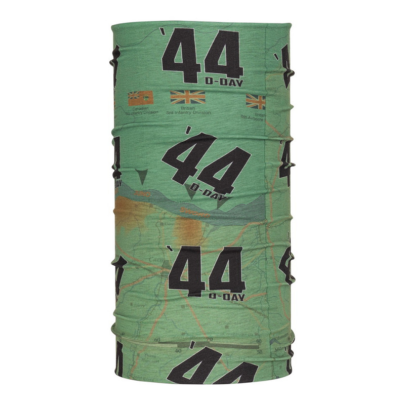 Made of a soft and stretchy fabric, this Wrap is designed to be worn in various ways, such as a scarf, face mask, headband, hat and more. Ideal for all kinds of activities and weather conditions. The Wrap has a beautifully detailed appearance. The Wrap features the map of Normandy and has some nice '44 D-Day logos.