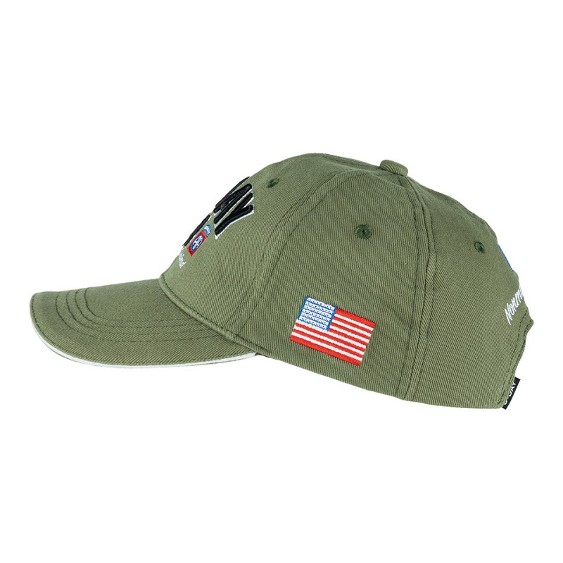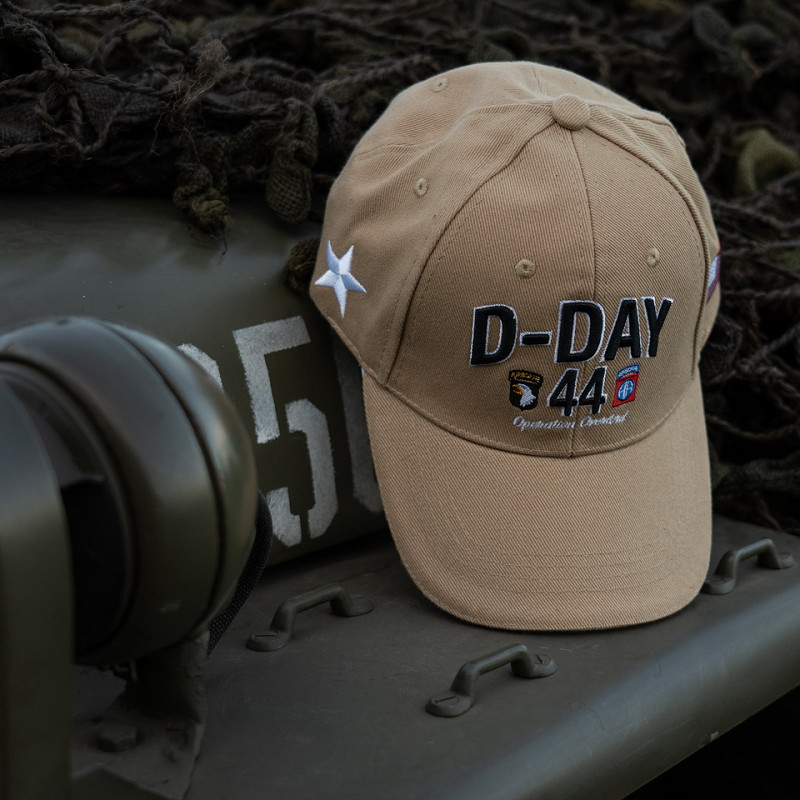 The baseball cap includes the Allied star, the 101st Airborne Division "screaming eagle" and the 82nd Airborne Division.