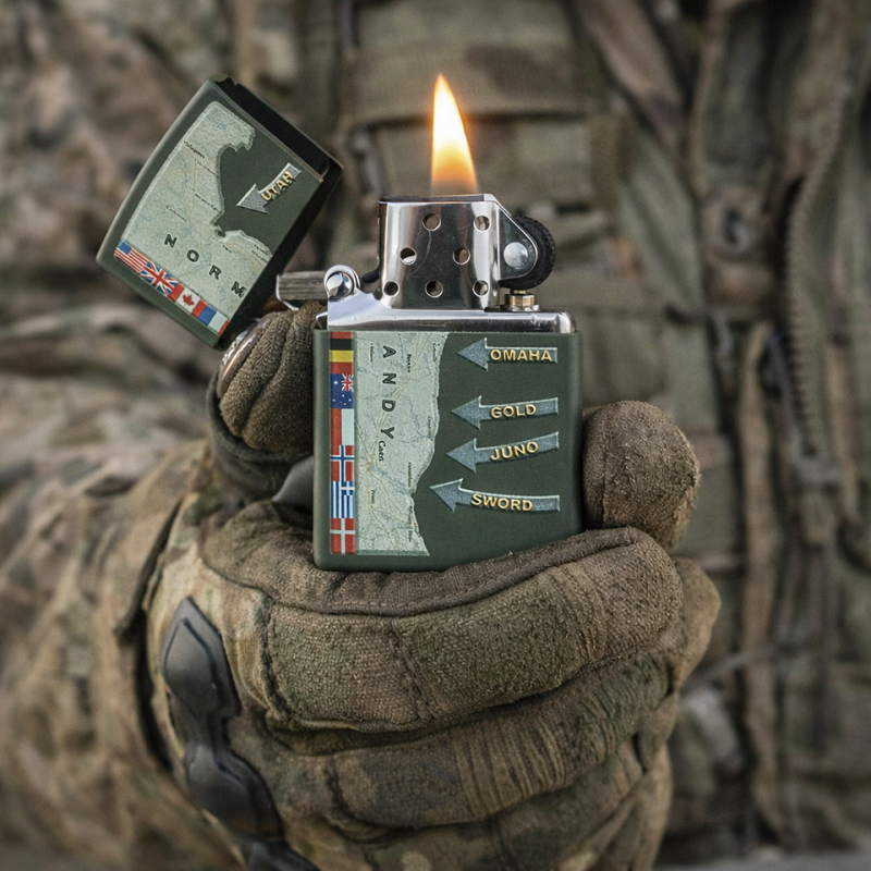 A powerful tribute to a historic turning point. This Zippo features a detailed D-Day military map of Normandy, inspired by the Allied landings on June 6, 1944. The design symbolizes strategy, courage, and history.