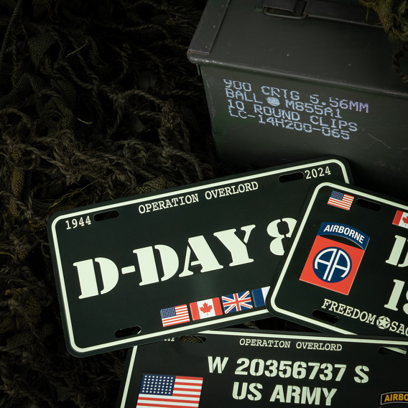 Check out our D-Day 80 License Plate. The license plate is filled with texts and emblems about the 80th anniversary of the legendary Decision Day.