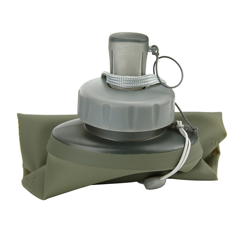 Thanks to the foldable design, this water bottle can easily be carried in a backpack.