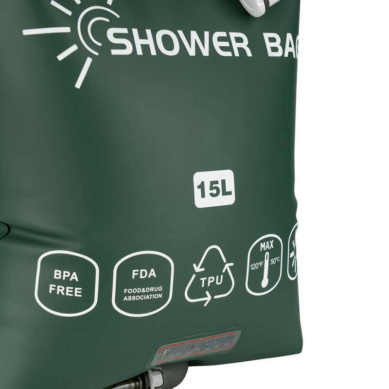 ¡Descubre nuestra práctica Ducha de Camping Premium! Con una capacidad de 15 litros, esta bolsa ofrece un amplio espacio para todas tus necesidades de ducha. Coloca la bolsa llena de agua al sol para disfrutar de una ducha caliente sin electricidad. La ducha de camping es resistente a temperaturas de hasta 50 grados Celsius y es perfecta para acampar.