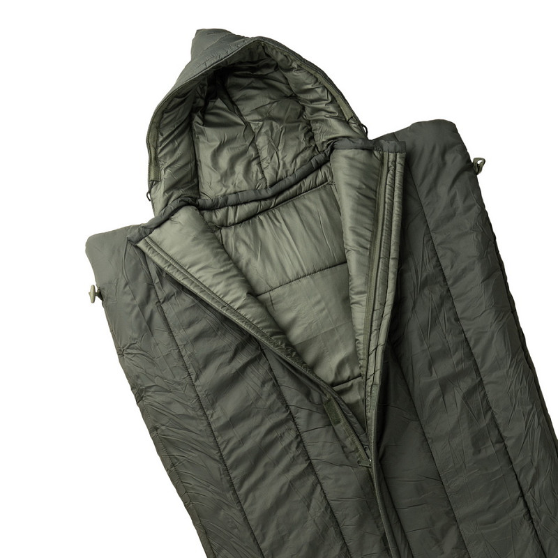 El saco de dormir Comandante es un cómodo saco de dormir militar equipado con una capucha ajustable. Gracias al relleno de fibra hueca, tu cuerpo se mantendrá caliente hasta -15 °C.