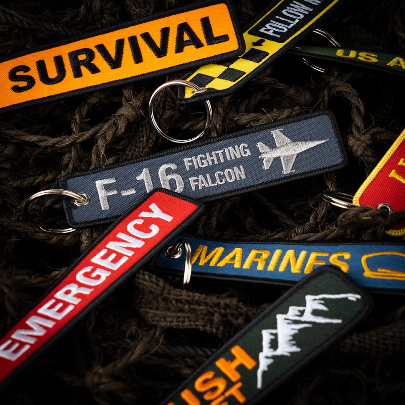 Porte-clés très finement tissé en 100 % tissu. Grâce à la finesse du tissage, cet emblème est très détaillé. L'image de l'avion de chasse F-16 figure sur les deux faces.