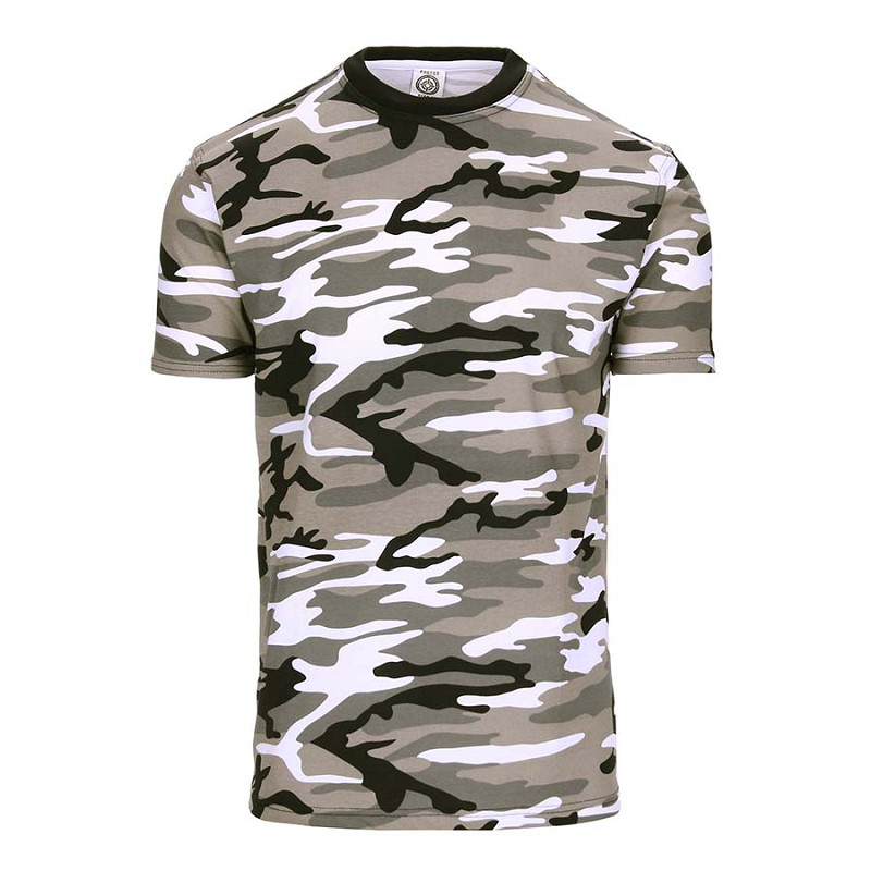 T-shirt camouflage composé de 95% coton. Le T-shirt est confortable à porter grâce aux 5% d'élasthanne dans le tissu.