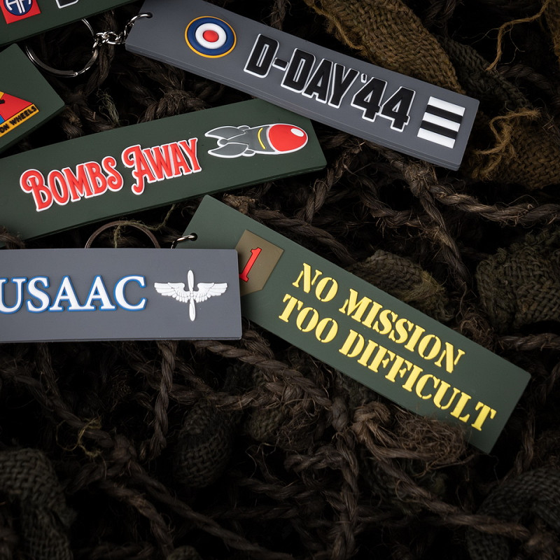 De notre série Fostex WWII, un joli porte-clés en PVC. Il comporte un logo sur les deux faces, no mission too difficult/no sacrifice too great.