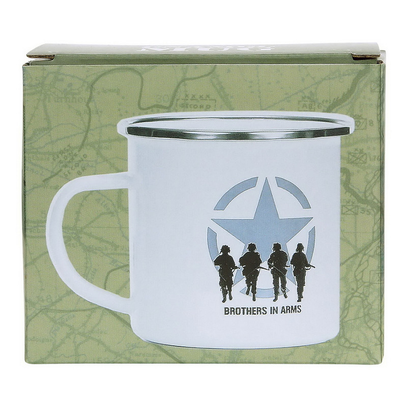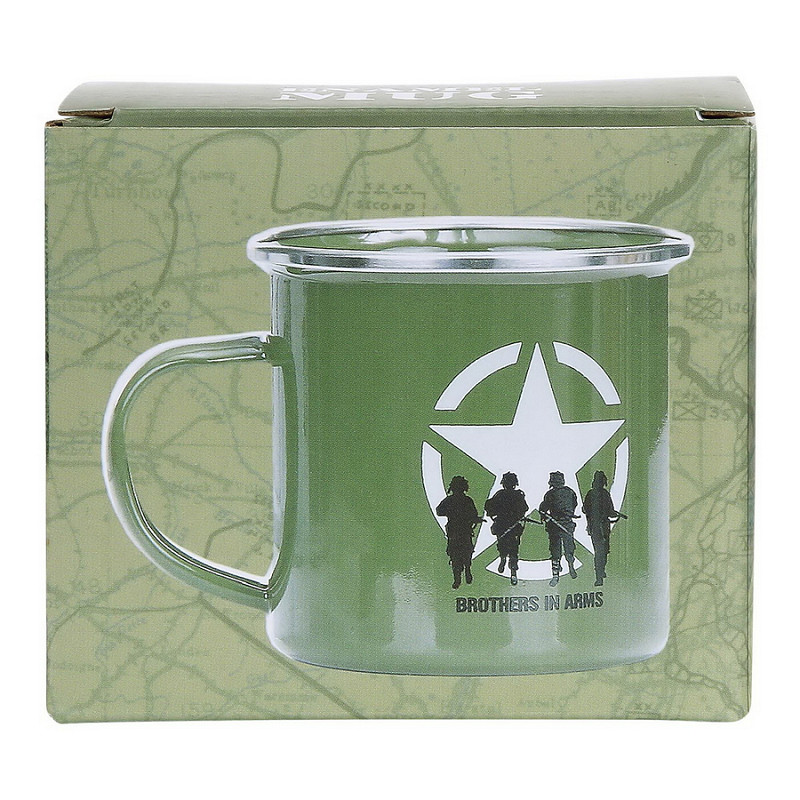 Tasse en émail imprimée: Brothers in Arms. La tasse est faite 100% émail.