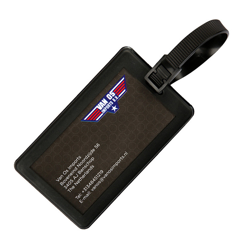 Bagagelabel van kunststof met riempje. Handig om uw bagage herkenbaar te maken. Op het label kunt u makkelijk uw naam, adres en contactgegevens noteren. Zo raakt uw bagage niet gauw meer kwijt.