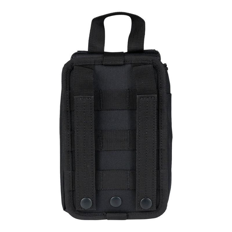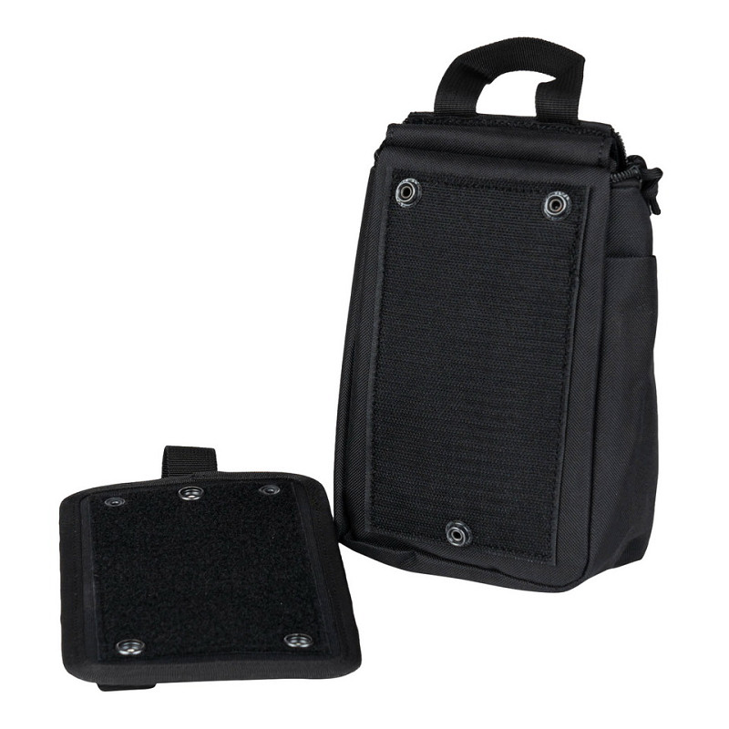 De snelsluitende MOLLE-bevestiging met klittenband zorgt voor eenvoudige bevestiging.