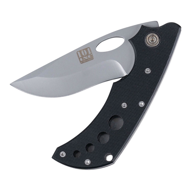 Stevig zakmes met een metalen lemmet en een zwart handvat. Het mes is voorzien van een clip, waardoor het eenvoudig te bevestigen is aan een riem of tas. Het ontwerp bevat een duimgat voor soepel openen en een ergonomisch gevormd handvat voor een goede grip