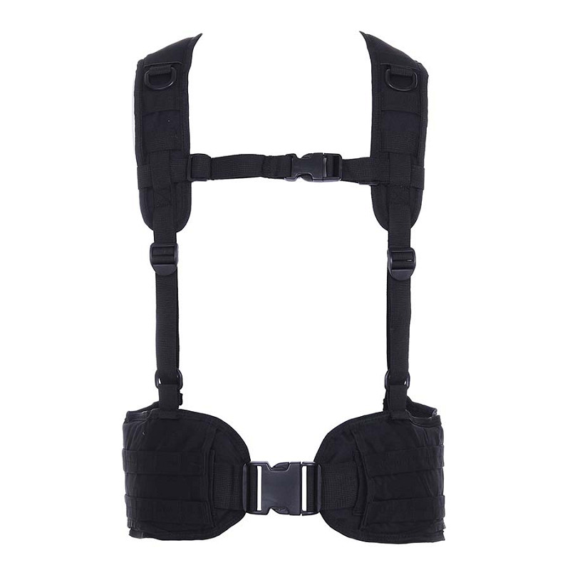 Het harnas heeft als doel om bij een zwaar beladen Tactische riem, de last te verdelen over de schouders. Hierdoor zal de druk op de heupen afnemen en tegelijkertijd blijft de Tactische riem altijd op dezelfde positie. Het harnas is volledig in hoogte te verstellen en heeft gepolsterde schouderbanden voor meer comfort. Tevens heeft het aan elke kant een D-ring voor het bevestigen van allerlei accessoires of het doorvoeren van communicatie-kabels of drinkslang.