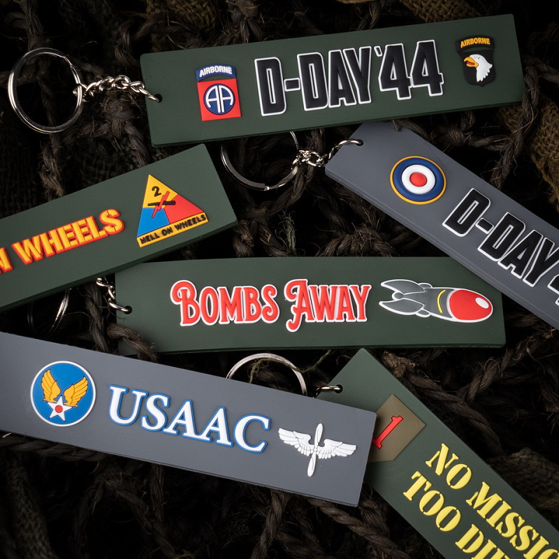 Van onze Fostex WWII serie een mooie pvc-sleutelhanger. Aan twee kanten voorzien van een print. De uitdrukking "Bombs away" werd voor het eerst gebruikt door Amerikaanse piloten tijdens de Tweede Wereldoorlog, en het werd een populaire slogan in die tijd.