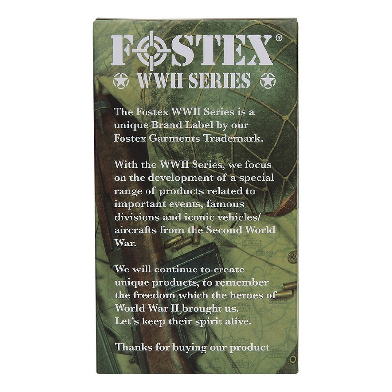 De Fostex WWII-series is een speciaal merklabel onder ons Fostex Trademark. Met de WWII-series richt Fostex zich op de ontwikkeling van unieke producten die verband houden met belangrijke gebeurtenissen, beroemde divisies en kenmerkende voertuigen/vliegtuigen uit de Tweede Wereldoorlog. Denk hierbij aan de beroemde 101st en 82nd Airborne divisies, de Amerikaanse geallieerde ster die op alle voertuigen te vinden was, en belangrijke operaties zoals Overlord, Market Garden etc.