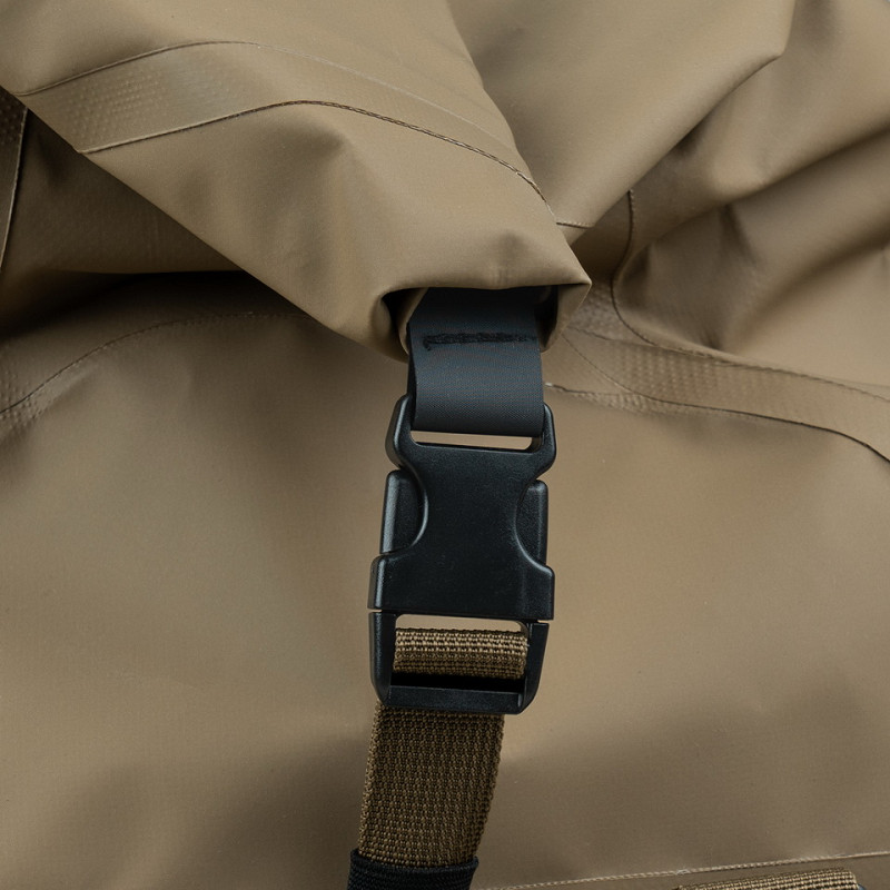 Sluit de opening van de tas en rol deze 2 tot 3 keer om, bevestig hierna de buckle sluiting.